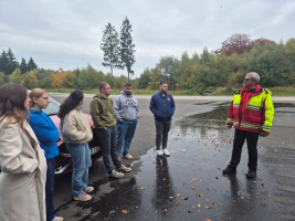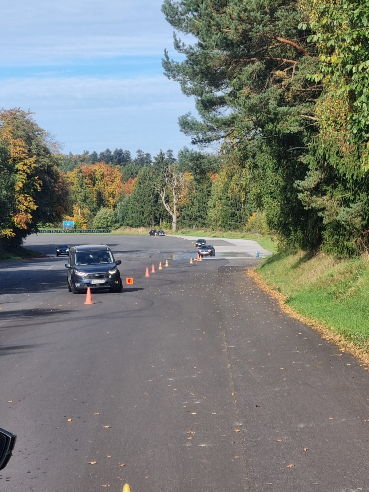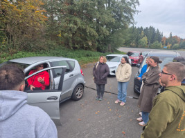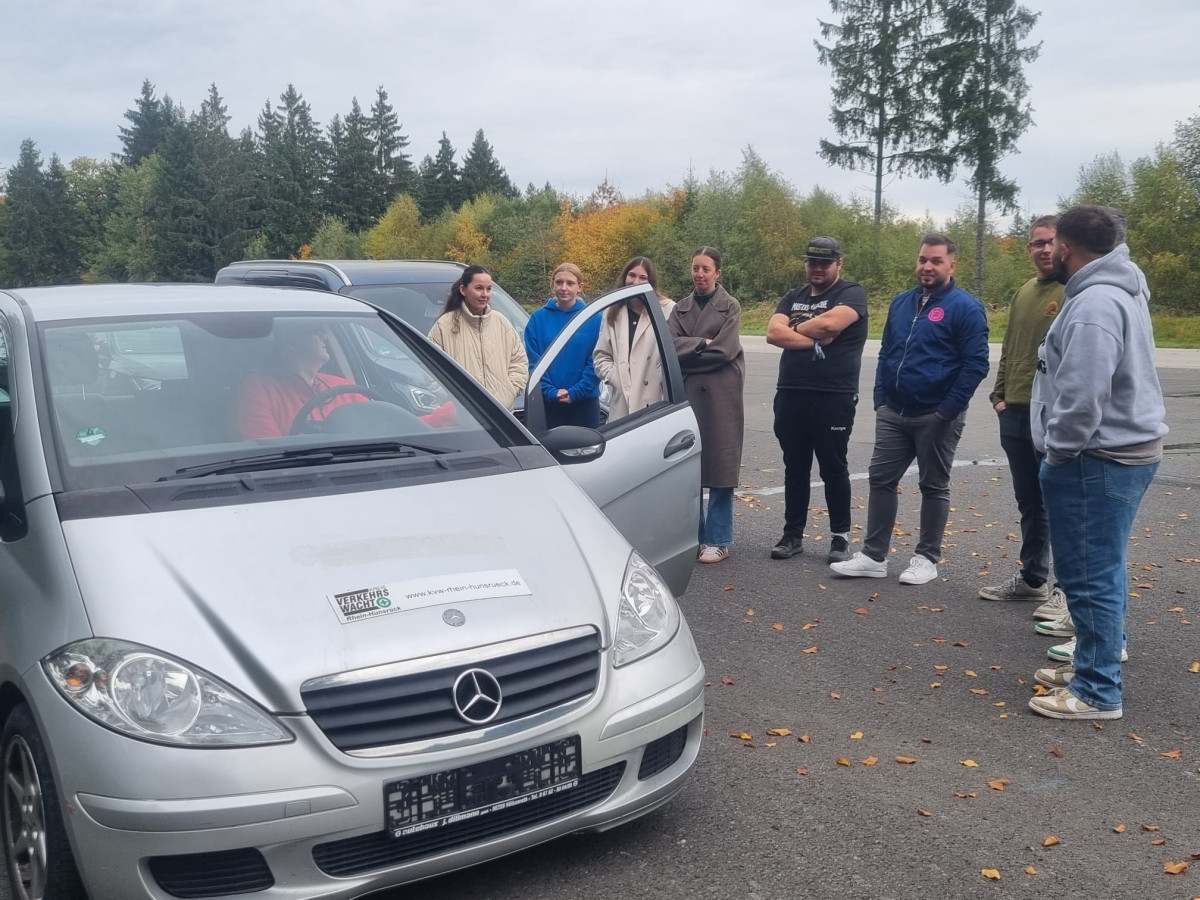 Dieses Training, durchgeführt in Kooperation mit der Verkehrswacht Rhein-Hunsrück, umfasste theoretische Teile rund um Unfallursachen und Fahrzeugtechnik sowie praxisorientierte Übungen wie Brems- und Ausweichmanöver, Schleuderkurs und Notfallmanöver. Unser Fahrsicherheitstrainer Tom verfügte über Wissen aus 40 Jahren Fahrsicherheitstraining, welches er uns kurzweilig und realitätsnah vermittelt hat. Besonders wertvoll war die Möglichkeit, in kontrollierter Umgebung schwierige Situationen zu üben. Wann geht man bei 100 km/h mal voll in die Eisen? Wie verlängert sich der Bremsweg auf naßer Fahrbahn? Wie lenkt man eigentlich gegen?